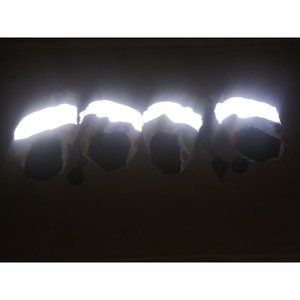 Pre-owned small breed dog fruity booties in good condition. Please see all photos for booties general pre-owned condition and measurements.
