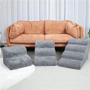 🧿【Multiple Stairs Size to Choose】TWO-STEP: 15.7"L*16.5"W*11.8"H, THREE-STEP: 23.5"L*16"W*16"H, FOUR-STEP: 28"L*15"W*20"H. It's a dog stair for most high beds, couch and sofa.