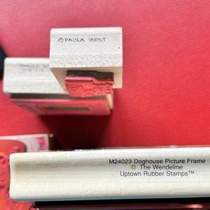 High quality lot of 5 dog theme rubber stamps with solid wood mounting. Excellent condition. Some have been used a few times, others have not. Brands include Paula Smart, Uptown Rubber Stamp and unmarked. Multiple sizes.