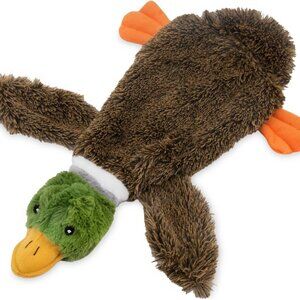 This brand-new, never used, squeaky dog toy is a size small. The 2-in-1 Fun Skin stuffless, ultra soft, squeaky flat duck is for dogs who love to play.