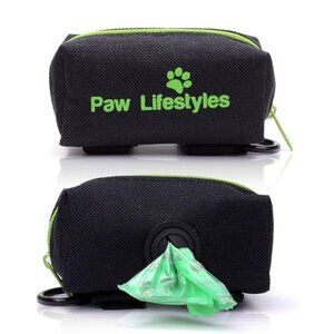 This brand-new, never used, lightweight, waste bag leash dispenser from Paw Lifestyles has been discontinued and is difficult to find. Unlike other leash dispensers, this one secures tightly to the leash and does not swing or dangle. The roll is secured and protected from the weather by a zippered pouch.