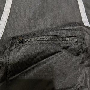 This dog rain jacket from Dog Whisperer is brand new and still has the original tag attached. This jacket has a microfleece lining on the inside and reflective stripes on the outside, so you can walk your dog out on a rainy night and still be seen by a vehicle's headlights.