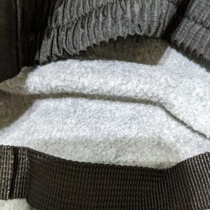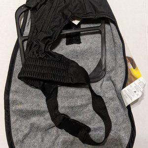 This dog rain jacket from Dog Whisperer is brand new and still has the original tag attached. This jacket has a microfleece lining on the inside and reflective stripes on the outside, so you can walk your dog out on a rainy night and still be seen by a vehicle's headlights.