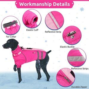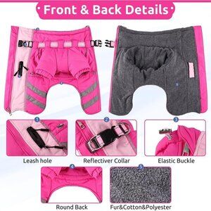 The Dog snowsuit is equipped with adjustable straps at the neck and waist to fit the dog's body and will not restrict the free movement of pet friends. The stretchable belly strap makes the dog coats flexible and adjustable, and the back of the jacket has a secure
