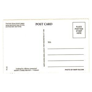 This whimsical postcard captures a relaxed dog sporting sunglasses while floating on a pool raft. Perfect for sending a smile and spreading awareness about pet adoption. Photographed by Mary Bloom for the North Shore Animal League, it's an ideal way to combine charm with a meaningful cause.