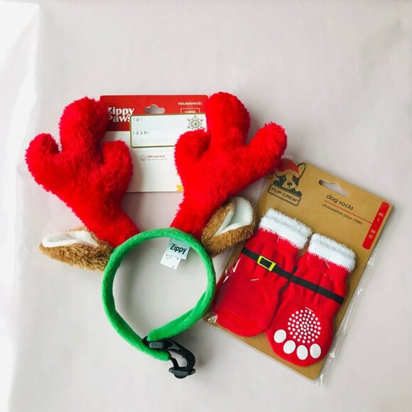 Dog Zippy Paws Christmas Holiday Dog Reindeer Antlers & Socks Size - L