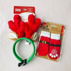 Dog Zippy Paws Christmas Holiday Dog Reindeer Antlers & Socks Size - S