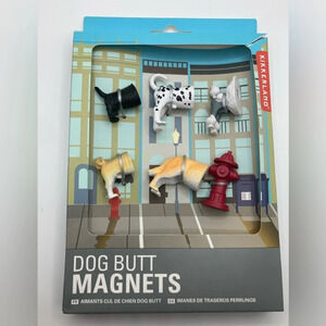 Dog butt magnets feature dog butts from a variety of breeds and one fire hydrant.