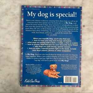 A keepsake scrapbook for 7-11 year olds with fillable spaces for details about a pet & locations for photos. It includes many dog facts, fun games & info on making dog treats & toys. Each page has drawings & illustrations. Would make an excellent gift for a new pet owner. It's not just about puppies & works for older dogs as well. See video.