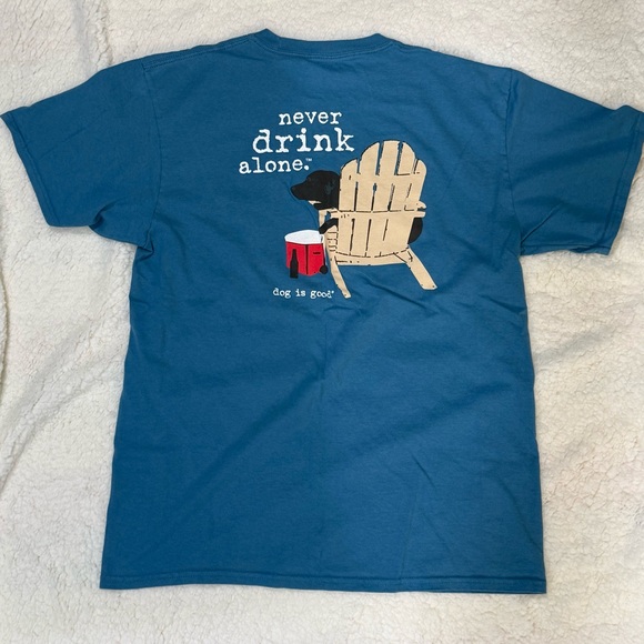 Dog is Good Never Drink Alone T Shirt w/ Black Lab Men’s Unisex Large GUC