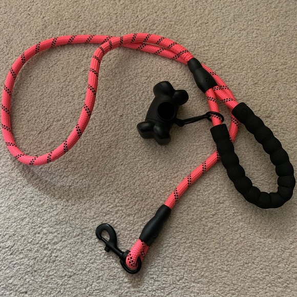 Great condition, only used once, has little reflective bands around it, can be used for all size dogs but works better with bigger dogs, comes with poopy bag holder (bags not included)