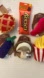 Fun set of food-themed dog toys including a Reese's plush. Bright and colorful designs.