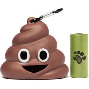 A unique dog waste bag dispenser in the shape of the classic 'Poop đź’© Emoji'. This item comes fully assembled with a carabiner clip, ideal for easy connection and hands-free use. Perforated dog waste bags are included already inside the dispenser which allows for immediate use.