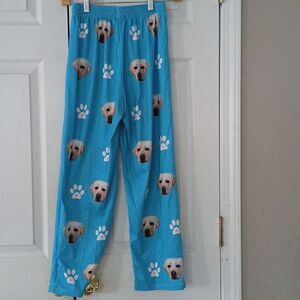 Dog face print turquoise blue white pajama bottoms