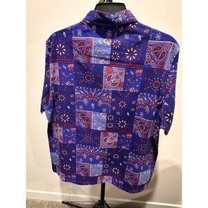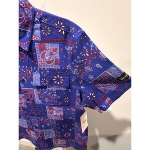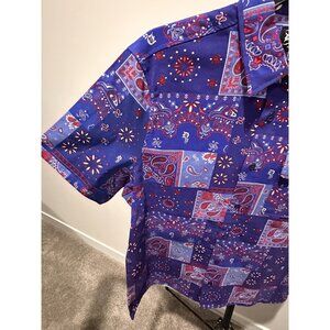 Mens Button Down shirt Blue Bandana Brand : Dogg Supply by Snoop Dog Short sleeve size : XL Button down 98% cotton 2 % Spandex Non-smoking environment Pet Free New with tags