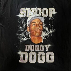 Classic black tee featuring a bold Snoop Dogg graphic. Perfect for fans and casual wear.