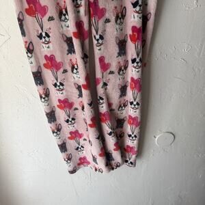 Doggie Drawings Pajama Pants Womens Small Pink French Bulldog Hearts Fleece Cute