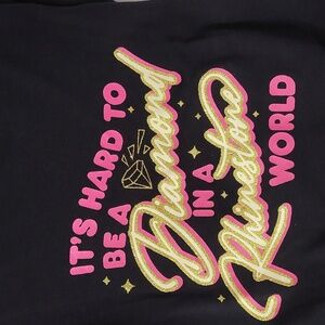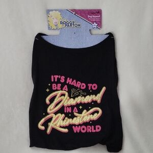 Why is it that only humans can dress stylish, don't leave out the most important family member. Beautiful black and pink with glitter shirt that reads "it's hard to be a diamond in a rhinestone world" Size is XL for dogs 35-55lbs