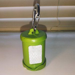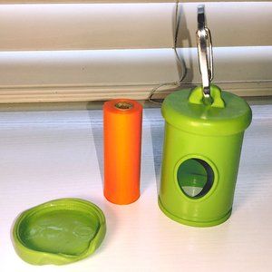 Doggy Waste Bag Dispenser Green w/ Orange Bags Reflector & Clip