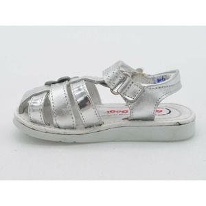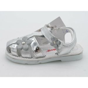 Dogi Sandals Baby Size 6 Silver Glitter Flower Strappy Slingback Hook & Loop