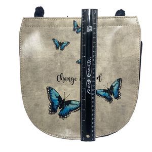 Dogo Women Shoulder Bag Crossbody Change Is Good Grey Blue Butterfly Vegan