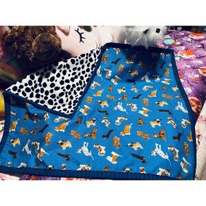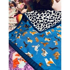 This Dog Doll Blanket has dogs with a blue background and Dalmatian Minky Backing. Super cute for the child who loves dogs for cuddling their stuffed animals or dolls, cute for small dog blanket or car seat Snuggie. I hope whoever will love this will find it.