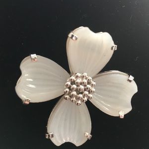 Elegant silver and milk glass look dogwood design brooch. Perfect accessory for spring.