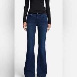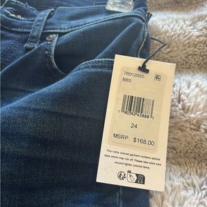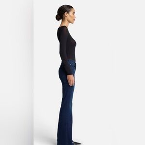 Work and play-ready. A timeless wide-leg trouser jean made with premium stretch denim. This deep blue wash enhanced with gentle fading and whiskering offers a subtle sophistication that spans your schedule. • Mid Weight, High Stretch Fabric
