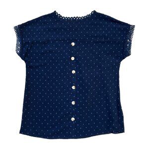 Dokotoo Crewneck Crochet Lace Top Navy Blue Short Sleeved Women's Size Medium