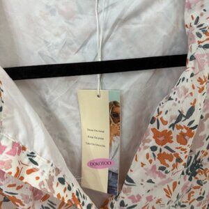 Dokotoo Brand. Size XL. New with tags. 100% Polyester. Beautiful floral blouse with ruffle and trim details. Armpit to Armpit measures 23inches.