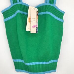 Dokotoo Green Light Blue Edge Sleeveless Knit Preppy Sweater Tank NEW