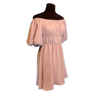 Summer dress, Mini Dress, Off The Shoulder Dresses, Square Neck, Lantern Sleeve With Elastic Cuff, Stretch High Waist, Ruffle A-Line, Regular Thickness, Above Knee Length, Strapless, romantic dress, blush pink, soft pink