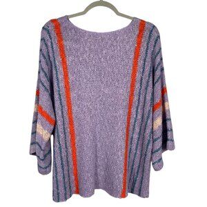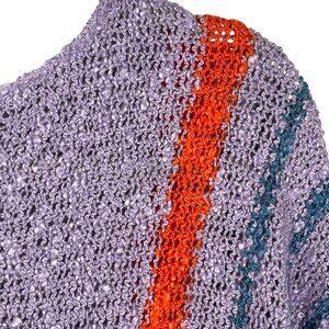 Add a pop of retro boho charm to your wardrobe with this Dokotoo lightweight sweater in gorgeous lavender purple with playful striped accents in coral, peach, and teal. Open-knit design with a breezy, relaxed fit. 3/4 batwing sleeves for effortless comfort and style. Lightweight and perfect for layering across seasons. This cozy yet chic piece is perfect for spring and summer evenings, transitional weather, or layering over tanks and camis. Pair with jeans, skirts, or shorts for a casual boho vibe.