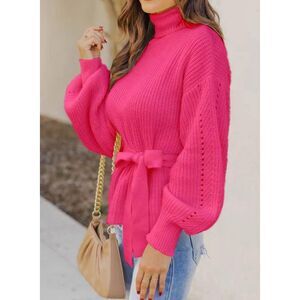 * Description: Long Sleeve Sweater/Pullover Sweater/Turtleneck sweater With Tie Waist/Soft And Lightweight Fabric/Comfy Stretchy Knit Fabric/Belted Waist/Solid Color/Relaxed Loose Fit/For Spring, Fall, Winter
