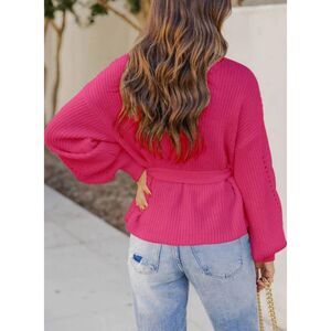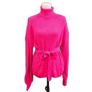 Dokotoo Rose Turtleneck Sweaters Long Sleeve Belted Knitted Pullover Top Sz M
