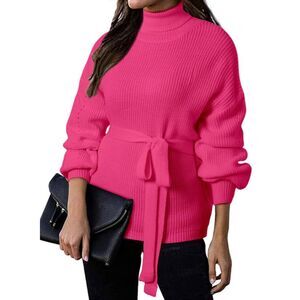 Check out this Dokotoo Rose Turtleneck Sweaters Long Sleeve Belted Knitted Pullover Top today!