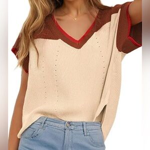 Dokotoo Soft V-Neck Sweater Short Sleeve Pull Over Top