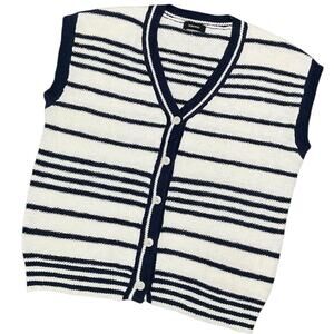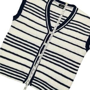 Dokotoo Striped Navy and White Button-Up Vest Size Large EUC