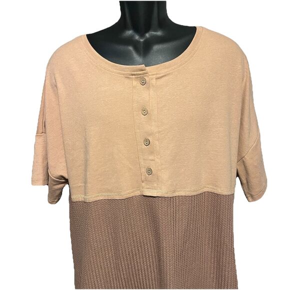 Dokotoo Waffel Knit Two Tone Henley Tunic Top Brown Tan Women's Size Medium NWT