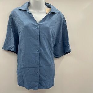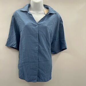 Dokotoo Women's Fashion Casual Blue Button Short Sleeve Shirt - Size L