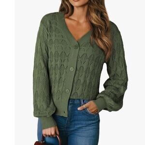 Dokotoo | Women's Green Crochet Button Down Cardigan Sweaters | size Medium