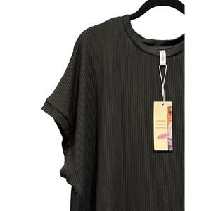 Dokotoo Women's Short Sleeve Crewneck Ribbed Knit Pullover T-Shirt Size XL Black