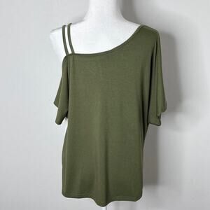 Dokotoo Women's Tunic Top L Green & White Cold Shoulder Twist Knot Color Block