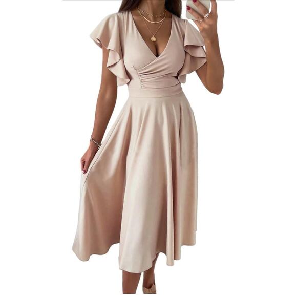 Dokotoo Women's V Neck Elegant Party Dress Short Sleeve Skater Dress SIZE XL. Condition is New with tags. Shipped with USPS Ground Advantage.