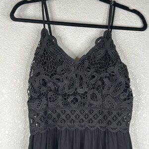 Dokuutu Black Lace Summer Boho Embroidered V-Neck Spaghetti Strap Dress Size S