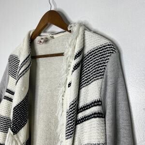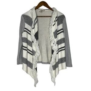 Dolan Anthropologie Gray Striped Open Front Fringe Sweater Size Small