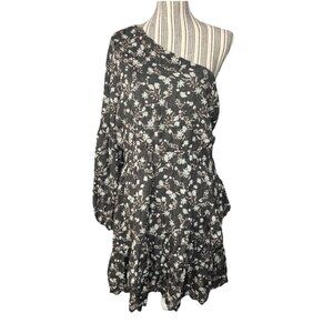 Dolan Anthropologie Mini Boho Western Floral Gray Feminine Dress LARGE
