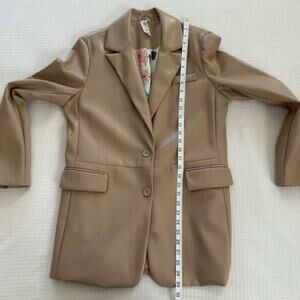 Dolan Anthropologie Vegan Leather Neutral Beige Womens Blazer Fully Lined US M