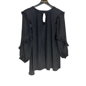 Dolan Black Ruffled Trim Keyhole Blouse S