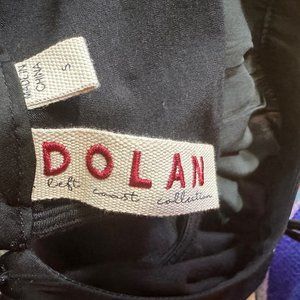 A chic Dolan Black Ruffled Trim Keyhole Blouse in size small. The blouse features a keyhole detail, ruffled edges, and a versatile black color, perfect for any occasion.